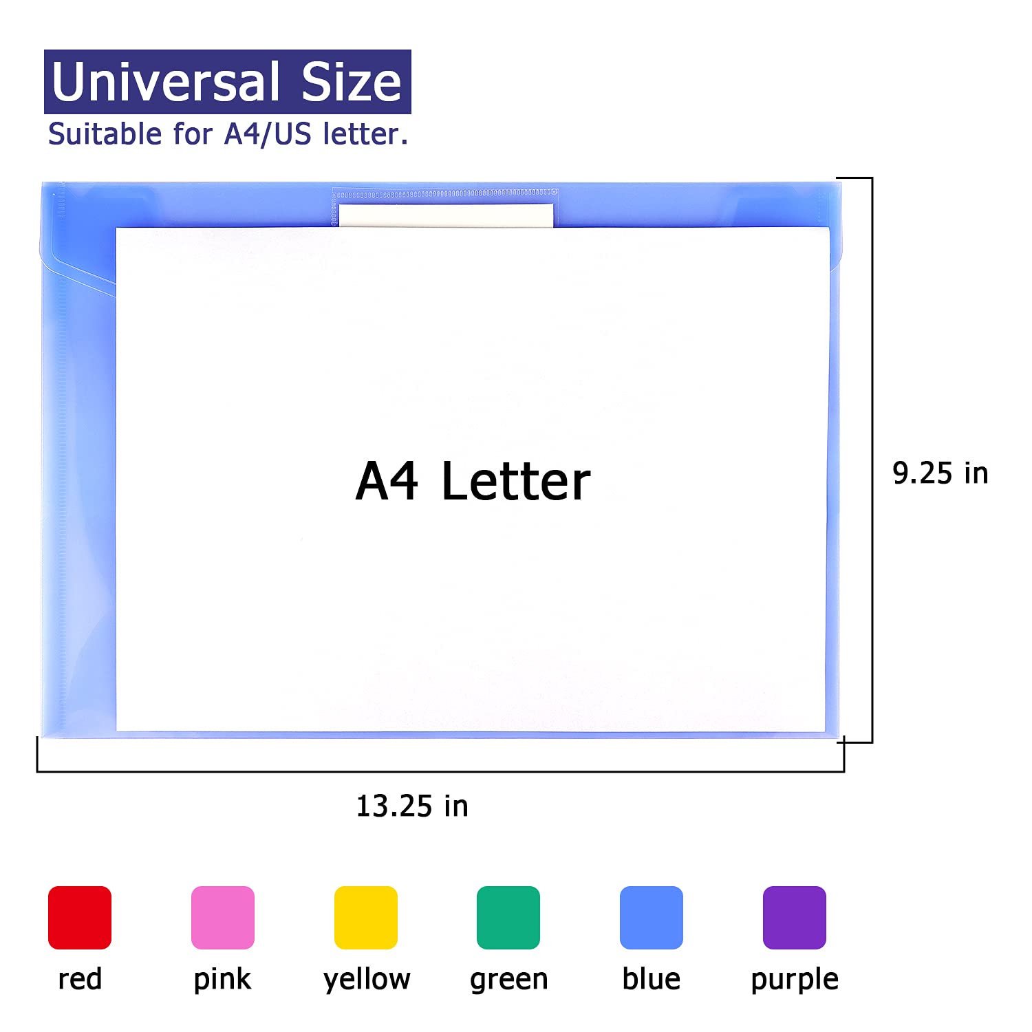 - [Premium Quality Mterial] Durable PP material plastic envelope folder, The envelope folder size is 13.25 x 9.25 inches perfect for US letter/A4 size paper and other small items storage.