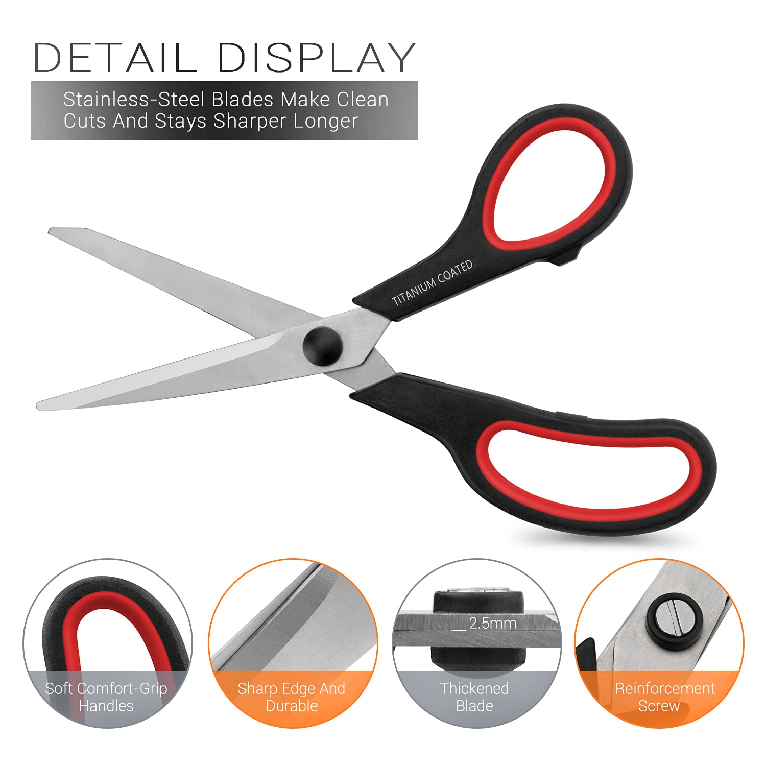 Scissors 8" Multipurpose Right/Left Handed Titanium Coated Sturdy Sharp Scissors for Office Home School Students