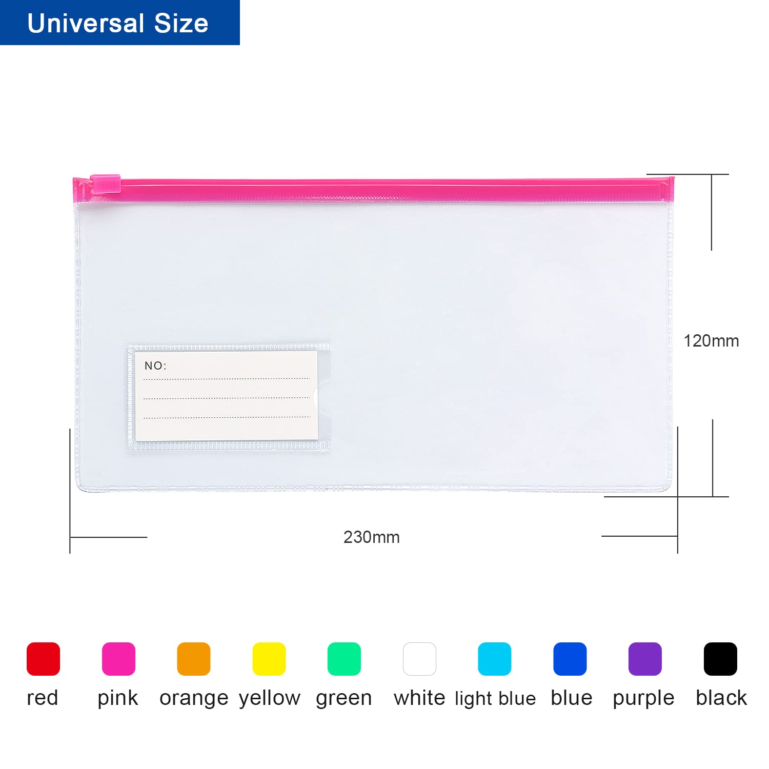 Tamaki 10 Pack Zipper Plastic Envelopes, Small Plastic Envelopes, A6 Size for Pencil Case Bulk, Bill Bag, 10 Color (9x4.7 Inch)